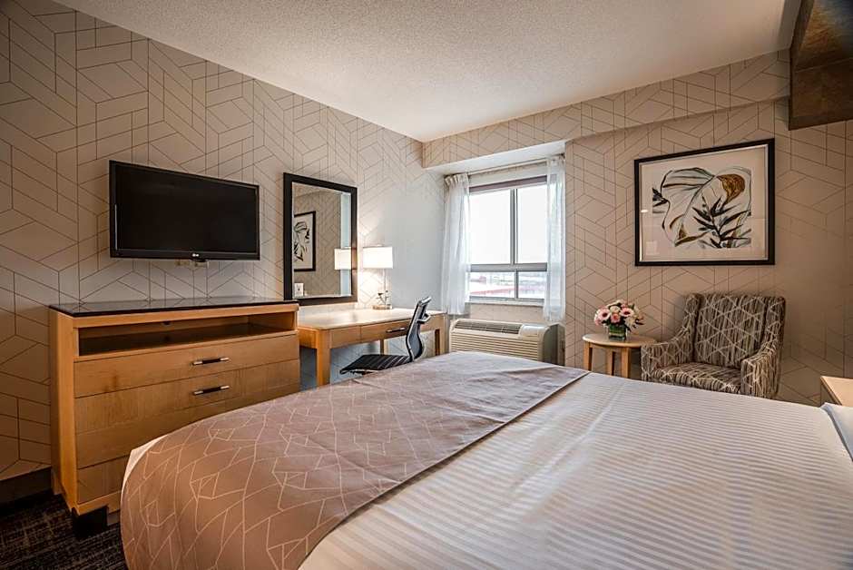 The hot tub and fireplace are the standout features of this suite. The air-conditioned suite features 1 bedroom and 1 bathroom with a bath and a hairdryer. The suite provides a tea and coffee maker, a seating area, a safe deposit box, a flat-screen TV with streaming services, as well as city views. The unit offers 1 bed.